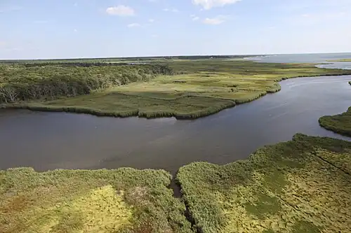 Prior to development, most of present-day Alphabet City was a salt marsh, regularly flooded by the tides of the East River (technically an estuary, not a river).[21][22] Marshes played a critical role in the food web and protected the coast. The Lenape Native Americans who inhabited Manhattan before European contact presided over similar ecosystems from New York Bay to Delaware Bay.[23] They tended to settle in forest clearings.[24] In summer, however, they foraged shellfish, gathered cordgrass for weaving, and otherwise exploited the wetlands.[25][26]