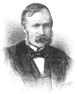 During the June Days uprising in 1848 Alphonse Alfred Haentjens fought as a volunteer for the forces of order, and received a bullet in the chest. He was decorated on this occasion. He married the daughter of Marshal Bernard Pierre Magnan.[4] Haentjens became a shipowner.[5] He was also involved in industry and in literature, and was one of the main shareholders of Le Monde illustré.[4] In 1868 he founded the short-lived newspaper La Sarthe to present democratic and liberal views. It was soon displaced by Le Maine libre.[6]