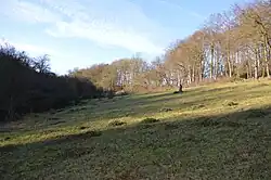 The small site is a steeply sloping area of meadow and woodland, and it has been designated an SSSI as a rare example of unimproved chalk grassland. Grass species include upright brome, false brome and sheep's fescue, and there are many orchids, especially common twayblade and common spotted orchid. There are also many butterflies, such as marbled white and the rare Duke of Burgundy.[1] The woodland has birds such as green woodpeckers and finches.[3]