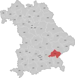 Altötting is located in southern Bavaria. As of the 2021 federal election, it comprises the districts of Altötting and Mühldorf.[1]