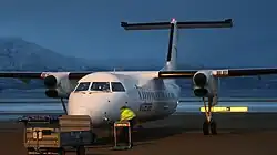 Alta Airport is served by three scheduled airlines and two charter airlines, providing services to eleven destinations, including two abroad.[28] Scandinavian Airlines and Norwegian Air Shuttle serve the airport using Boeing 737 aircraft,[29] each providing services to Oslo.[28] Widerøe operates regional services in Finnmark on a public service obligation contract with the Ministry of Transport and Communications. However, there is seven (three direct) daily services to Tromsø. Widerøe operates de Havilland Canada Dash 8 aircraft on their services, using both the 39- and the 50-passenger Dash 8 aircraft to Tromsø, and the 39-passenger Dash 8 aircraft only on services to regional airports in Finnmark.[30]