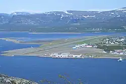 The first airport in Alta was built by the Wehrmacht during the German occupation of Norway. Alta was a central part of the German military activity during World War II, resulting in an airstrip being constructed at Elvebakken in 1943.[3] The airport was damaged beyond repair under Operation Nordlicht—the German withdrawal from Finnmark in 1944. During 1945 the Royal Norwegian Air Force operated a seaplane route along the coast of Northern Norway, which included a stop at Alta. However, the route was not resumed the following summer.[4] The municipality started lobbying the air force and the civilian aviation authorities to establish an airline route to Alta. Specifically, they argued that both the water aerodrome at Bukta and an airfield at Altagård/Elvebakken be included in the national plans for future airports. The area at Altagårdsletta was freed up by the military in 1946 and zoned for use as an airport.[5]