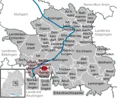 Adjacent communities are Neckartailfingen to the north, Nürtingen to the Northeast, Großbettlingen to the east, Bempflingen to the south and Neckartenzlingen in the West. All located in the district of Esslingen.