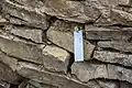 The main wall to the northeast was 13 meters thick and at least 10 meters high. It consisted of an external and internal dry stone wall with rubble filling in between. This wall was linked to another of around 40 meters length and around 5.8 meters thickness that radiated away towards the north east. It is likely that there was a gate at that point controlling access to the plateau.[2]: 29