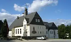 - Hauptstraße 109 – building with hipped mansard roof, partly slated, Swiss chalet style, 1922
