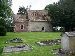 The south door was added in the 14th century.[14] The original chancel was as wide as the nave, but it was demolished and replaced with a brick one in 1748.[13] The two bells are dated 1626 and 1788, and were rehung in the west gable in 1904.[4]
