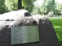 In the first trial, from 8 May to 2 June 1933, four of the defendants, Bruno Tesch, Walter Möller, Karl Wolff, and August Lütgens, who were classified as Communists, were sentenced to death by the Special Branch of the Altona District Court which had been set up by National Socialist judicial politicians.[10] The chairman of the Special Court in the trial was Johannes Block.[11] The sentence was carried out by beheading on 1 August 1933 in the courtyard of the building, now the Altona District Court. They were the first "politically-willed" executions in the Third Reich.[12] The other eleven defendants were sentenced to prison terms, some of them for many years, including Emil Wendt, who was sentenced to 10 years.[13] After serving his term, he was taken to the Waldheim Prison in Saxony, where he was murdered on 26 October 1944. A total of six trials related to Altona Bloody Sunday took place through 1935.