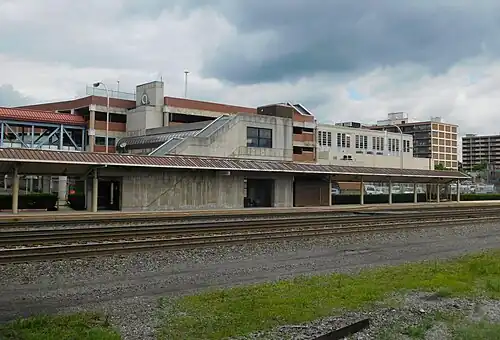 The Altoona Transportation Center is an intermodal passenger facility in downtown Altoona, Pennsylvania. It is served by the daily Amtrak Pennsylvanian, Greyhound Lines intercity buses, and AMTRAN local bus service (for which is serves as the hub). The station was built in 1986, replacing a temporary station, which had in turn replaced the 1887-built Pennsylvania Railroad station in 1972.
