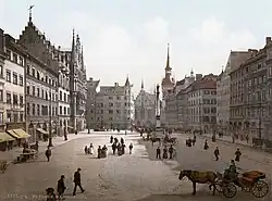 The bourgeois Munich was represented by the Old Town Hall in this district since the Middle Ages. In the 19th century, the houses north of the Marienplatz had to give way to the construction of the New Town Hall. Because of its proximity to the courtyard, the Graggenauer Viertel was particularly popular for travelers. Today, the Platzl with the Hofbräuhaus form the main tourist attraction. With the Maximilianstraße, the Residenzstraße and the east side of the Theatinerstraße most of the prestigious shopping streets are also located in this district. North of the New Town Hall is the Marienhof. This area and its residential buildings were destroyed during the Second World War by US bombing raids. Meanwhile, used as a parking lot, the Marienhof was never rebuilt. Instead, today it is the location of the largest green area of the old town.[13]