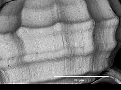 | Close-up of the shell of Alvania skylla (holotype at MNHN, Paris) | |