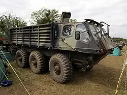 The Stalwart, formally classified by the British Army as Truck, High Mobility Load Carrier (HMLC), 5 Ton, 6 x 6, Alvis Stalwart and informally known by servicemen as the Stolly, and by former RCT as the Stally,[1] is a highly mobile amphibious military truck. Built by Alvis Cars between 1960 and 1971, these vehicles served with the British Army from 1963 until 1993.[2][3]