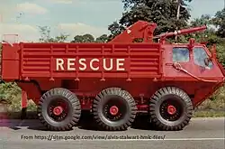 Bangkok International Airport bought a 623 Limber version as a rescue vehicle, in case any aircraft should end up in the water surrounding the airport. The main difference between this and every other Stalwart is the factory-fitted water monitor, mounted on the roof of the cab. This is chassis number STAL 11 / 706, and currently resides at Jesada Technik Museum in Bangkok. MOD Merlin records suggest that 706 was made in the first part of 1969.[23]