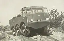 The Camion was a one off project vehicle that inspired the Stalwart; it was chassis number PV1. It consisted of an Alvis Salamander hull and cab, with the radiator still located in front of the rear mounted engine.[13]