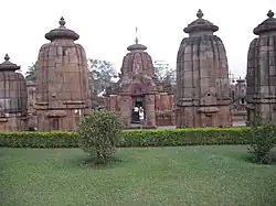 The oldest representation of an Amalaka as the base for the kalasha is seen in a door jamb at the Dahshavatara temple at Deogarh, dated to about 500 AD.[7] Amalakas appear to have been common at the top of shikhara by the Gupta period, though no originals remain in place. They were to remain standard in most of India, in the Nagara and Kalinga architecture styles of the west and east respectively, but not in the Dravidian architecture of South India.[8] Some early temples in the Deccan, such as the 7th-century Lakshamana temple in brick at Sirpur, have amalakas at the corners of some level of the shikhara (but not, as it survives, at the top in the usual way).[9]