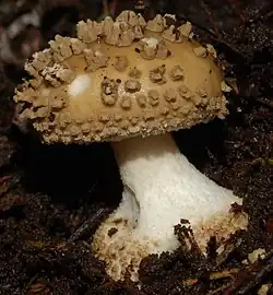 Amanita australis is a species of fungus in the family Amanitaceae. It produces small- to medium-sized fruit bodies, with brown caps up to 9 centimetres (3+1⁄2 inches) in diameter covered with pyramidal warts. The gills on the underside of the cap are white, closely crowded together, and free from attachment to the stem. The stem, up to 9 cm (3+1⁄2 in) long, has a ring and a bulbous base. The mushroom may be confused with another endemic New Zealand species, A. nothofagi, but can be distinguished by differences in microscopic characteristics.