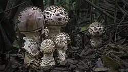 Amanita sculpta is a species of Amanita. It is distinctive because of its large size, with caps 10 to 27 centimetres (4 to 10+1⁄2 inches) in diameter. The cap's appearance, beige and dark brown with pileal warts, has been compared to that of a chocolate chip cookie.[1]