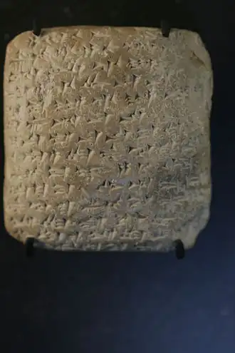 Amarna letter EA 256, in short EA 256, catalogued under the title Oaths and Denials,[1] is one of a total of about 350 so-called Amarna letters, belonging to an official correspondence dating to the mid-14th century BC (about 1350 BC till 20–25 years later). The initial corpus of letters were found at Akhenaten's city Akhetaten, on the floor of the Bureau of Correspondence of Pharaoh; others were later found, adding to the body of letters.