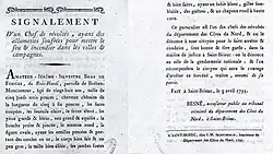 Indictment of Amateur-Jérôme-Sylvestre Bras de Forges, known as Bois-Hardy, by the public prosecutor Besné at the criminal court of the Côtes-du-Nord department, in Saint-Brieuc (1793).