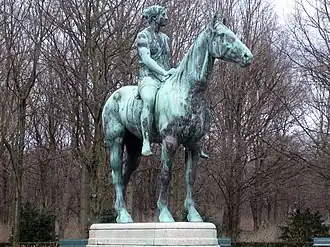 Amazone zu Pferde ("Amazon on horseback") is an outdoor 1895 bronze equestrian statue by Prussian sculptor Louis Tuaillon, installed in Tiergarten in Berlin, Germany. The name of the artwork refers to the Amazon warriors, a nation of "all women" warriors of Iranian origin (related to Scythians and Sarmatians), who inhabited the regions around the Black Sea and Eurasian steppes from the 2nd millennium BC, until the start of the Early Middle Ages.[1][2]
