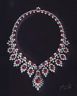A Shinde painting of a necklace illustrates his mastery of the art of jewelry designing.