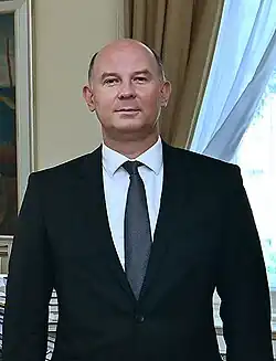 The ambassador and his staff work at large in the Russian Embassy in Ljubljana.[1] The current Russian ambassador to Slovenia is Timur Eyvazov, incumbent since 18 November 2019.[2]