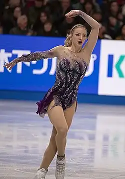 Seventh in both segments of the competition, she placed sixth overall with a score of 201.02, breaking 200 points internationally for the first time. Speaking afterward, she said, "breaking that point target internationally for the first time, it really makes me feel like I'm up there, and it's not just, ‘Oh, she got second at Nationals; she did this in her own country.’ I know I can hold my own internationally, and this is just a taste of that."[36][37] She went on to finish seventh at the 2021 NHK Trophy.[38]