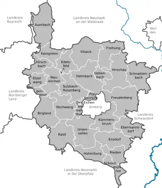 Amberg-Sulzbach (Northern Bavarian: Amberg-Suizboch) is a Landkreis (district) in Bavaria, Germany. It surrounds but does not include the city of Amberg. It is bounded by (from the north and clockwise) the districts of Neustadt an der Waldnaab, Schwandorf, Neumarkt, Nürnberger Land and Bayreuth.