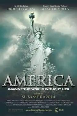 America: Imagine the World Without Her is a 2014 American right-wing conspiracy propaganda film by political commentator Dinesh D'Souza based on his book of the same name. It is a follow-up to his film 2016: Obama's America (2012). In the film, D'Souza contends that parts of United States history are improperly and negatively highlighted by liberals, which he seeks to counter with positive highlights. Topics addressed include conquest of Indigenous and Mexican lands, slavery, and matters relating to foreign policy and capitalism.[3][4] D'Souza collaborated with John Sullivan and Bruce Schooley to adapt his book of the same name into a screenplay. D'Souza produced the film with Gerald R. Molen and directed it with Sullivan. The film combined historical reenactments with interviews with different political figures.