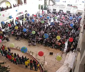 The student body currently is representative not only of the different communities in Cyprus but it also has an international element, with many pupils coming from other European countries, with Asia, Africa, Oceania and the Americas also represented.[2] The language of instruction is English. Despite its name, the school actually follows the British National Curriculum, with secondary school students being prepared for IGCSEs and A-Levels.[3] The Greek language is taught at all levels of the primary and secondary departments ensuring fluency for native Greek speakers and supporting competence in the basics for non-native speakers. French, Spanish and Italian are also offered. The School Diploma, recognized by the Ministry of Education as equivalent to the state-school diploma (Apolytirion), is awarded to students upon graduation.[4]