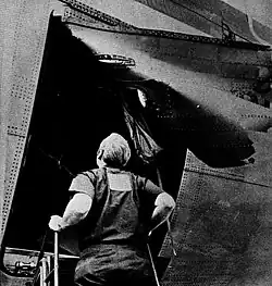 The rapid decompression in the cargo hold caused a partial collapse of the passenger compartment floor, which in turn jammed or restricted some of the control cables which were connected to various flight control hydraulic actuators. The jamming of the rudder control cable caused the rudder to deflect to its maximum right position. The control cables to the number two engine in the tail were severed, causing that engine to shut down.[2] There was no rupture of any hydraulic system, so the pilots still had control of the ailerons, the right elevator, and the horizontal stabilizer. Because the right elevator cable was partially restricted, however, both pilots had to apply back pressure on the yoke for the landing flare. Additionally, the approach and landing had to be made at a higher speed to prevent the sink rate from becoming excessive. The tendency to turn right was offset by using 45 degrees of left aileron, combined with asymmetric thrust of the two wing engines. In spite of the partial restriction of the controls, the pilots managed to return to Detroit Metropolitan Airport and land safely, with no major injuries.[3]