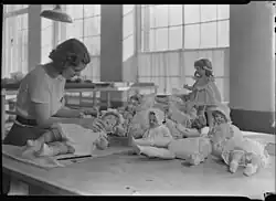 The company made the news in 1937 when it was ordered by the Federal Trade Commission to stop claiming that its patented "paratex" (a hard rubber made from a "secret formula") was superior to composition dolls (popularly made by American Character's competitor the Ideal Toy Company).[7]