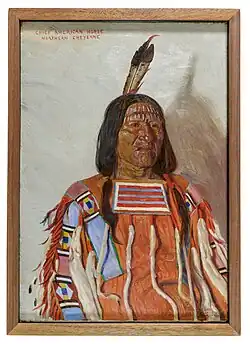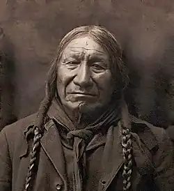 American Horse (Lakota: Wašíčuŋ Tȟašúŋke; also known as American Horse the Younger; c. 1840 – December 16, 1908) was an Oglala Lakota chief, statesman, educator and historian. American Horse is notable in American history as a U.S. Army Indian Scout and a progressive Oglala Lakota leader who promoted friendly associations with whites and education for his people. American Horse opposed Crazy Horse during the Great Sioux War of 1876–1877 and the Ghost Dance Movement of 1890, and was a Lakota delegate to Washington. American Horse was one of the first Wild Westers with Buffalo Bill's Wild West and a supporter of the Carlisle Indian Industrial School. His record as a councilor of his people and his policy in the new situation that confronted them was consistent, and he was known for his eloquence.