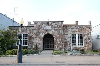 The American Legion Hall is a historic social meeting hall at Race and Spruce Streets in the center of Searcy, Arkansas. It is a single-story structure, built out of native fieldstone in 1939 with funding support from the Works Progress Administration (WPA). Its main block has a side-facing gable roof, with a projecting flat-roof section in which the entrance is recessed under a rounded archway. The building is typical of rustic-styled buildings constructed by the WPA and other jobs programs of the Great Depression.[2]