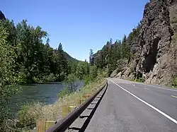 After its confluence with Rainier Fork, the American River flows through Pleasant Valley. It joins the Bumping River within the American Forks Campground.