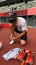 American Samoa received a universality slot from World Athletics to send a male track and field athlete to the Olympics,[10] which allows a National Olympic Committee to send athletes despite not meeting the standard qualification criteria.[11] The nation selected Nathan Crumpton,[12] a skeleton athlete who previously represented the United States in international competition. He placed as high as eighth place at the World Championships[13] but ultimately left the national team in 2019 after an arbitration case was filed against the United States Bobsled and Skeleton Federation, as well as stating that he would like to represent his Polynesian heritage.[14] Before the Games, Crumpton had never competed in any sprinting event, as his only athletics experience beforehand was being a long and triple jumper for Princeton University.[10]