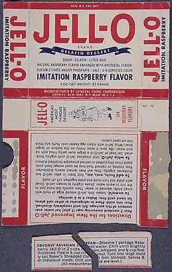 Delicate dishes were desirable for women but distasteful for men. Female hosts were expected to serve savory tartlets, sweet tarts, jellies, merengues, macaroon cream, gelatin, and teacakes at their tea parties or other gatherings of women.[27] Deserts in the 1950s were particularly "frothy, cloudlike, and very feminine. Whipped gelatin, whipped cream, whipped egg whites, and marshmallows were all incorporated into deserts to make them delicate, ethereal, and devastatingly rich" as historian Sylvia Lovegren writes in Fashionable Food: Seven Decades of Food Fads.[28] One such a recipe was a handwritten gift from a grandmother to her granddaughter:
