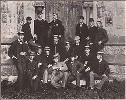 The club was founded as a student-directed double quartet in the spring semester of 1865 by Amherst senior Thomas E. Babb, in the spirit of Amherst's recently dissolved Donizetti Glee Club, founded in 1862.[1] Though the group nearly disbanded two years later when all but one of its members graduated, it was revived in 1868 after one lone year of inactivity. It continued to flirt with dissolution — some years being quite active and successful and others less so — until the fall of 1876 when it came under the professional direction and training of "Professor" Friedrich Zuchtmann, a vocal instructor from Springfield, Massachusetts. Under his leadership the club found more firm footing and soon became a permanent fixture of Amherst College life.