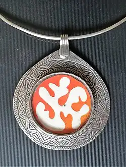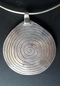 Silver pendant with spiral pattern of traditional Moroccan Berber jewellery, traditional side of a double-use piece