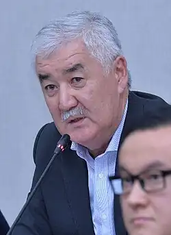 Qosanov ran on a platform in fighting against corruption, reducing the powers of a president, allowing direct elections of akims, making Kazakh economy less dependent on raw resources, and prohibiting the construction of nuclear power plants.[7] During his campaign, Qosanov was accused by several opposition groups such as the leader of Democratic Choice of Kazakhstan, Mukhtar Ablyazov, for being co-opted by the government due to history of Kazakhstan's unfair elections and treatment towards political activists. Qosanov himself stated that he already doubted that the elections would be fair and that if any violations were reported, he would condemn the results.[8] At the 2019 Kazakh presidential election, which took place on 9 June, he won 16.02% of the vote, making it a best performance by a candidate towards an incumbent president since Zharmakhan Tuyakbay in 2005.[9] On the night of 10 June, Qosanov conceded the race and congratulated Tokayev for his win to which he received criticism for basing it on the exit polls before final results were announced and for refusing to condemn the election despite his promise after many cases of fraud were reported.[10] Qosanov stated that the difference between the exit polls and the final results were usually similar in the elections. He emphasized that he's obliged not abandon his policy statements and principles and will promise to advocate for democratic values and for a dialogue between society and the authorities.[11][12]