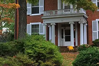 Amiss–Palmer House, also known as the Palmer House, is a historic home located at Blacksburg, Montgomery County, Virginia. It was built the 1850s, and is a two-storey three-bay brick house with a hipped roof and pattern-book Greek Revival style elements. These elements include the front portico and frieze. It has a traditional double-pile center-passage form. Also on the property are the contributing kitchen, a two-storey three-bay log house and a smokehouse.[3]