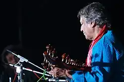Ustad Amjad Ali Khan (born 9 October 1945) is an Indian classical sarod player, best known for his clear and fast ekhara taans. Khan was born into a classical musical family (the Bangash lineage of the Senia Gharana) and has performed internationally since the 1960s. He was awarded India's second highest civilian honor Padma Vibhushan in 2001, India's third highest civilian honor Padma Bhushan in 1991 and Padma Shree in 1975.[3]