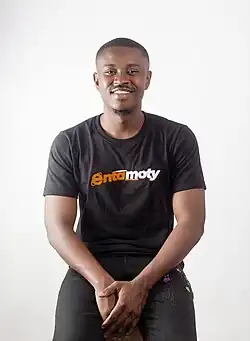 ![]() Samuel Amoaning wearing Entamoty Media merchandis | |