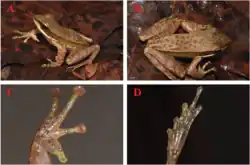 - ^ a b c Bain, Raoul H.; Stuart, Bryan L.; Orlov, Nikolai L. (2006). "Three New Indochinese Species of Cascade Frogs (Amphibia: Ranidae) Allied to Rana archotaphus" (PDF). Copeia. 2006 (1): 43–59. doi:10.1643/0045-8511(2006)006[0043:tnisoc]2.0.co;2. ISSN 0045-8511. Archived from the original on 3 March 2016.
