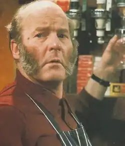 A Daily Telegraph writer said Magill's "grumpy pub landlord" was one of the best-loved characters in Emmerdale, who ruled The Woolpack with "a benign Yorkshire gruffness."[2] Of Magill's performance, they wrote "While easily caricatured, Magill's portrayal of Amos was remarkably subtle, containing elements of real sadness and pathos."[2] In a 2021 Radio Times poll, Amos and Henry were voted as the joint tenth "best soap pub landlord of all time", receiving 3% of the votes.[4] Amos was named as one of "the 30 greatest Emmerdale residents" by a writer for Inside Soap.[5] They branded him "cantankerous" Amos who was "better known for his enormous sideburns than for his pint-pulling skills."[5] The writer also assessed that Amos and Henry formed an "unforgettable double act", adding they were "often likened to an old married couple due to their bickering."[5]