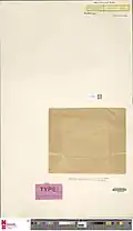 The holotype of the species was collected from a type locality called the "Côtes du Portugal"[11] (the coast of Portugal) by an unknown collector and was donated to the Lamouroux herbarium by de Beauvois,[12] where it remains as of 2013.[10] The holotype specimen consists of part of a single branched axis with calcified intergenicula and uncalcified genicula, as well as eight fragmentary parts of the same specimen, some of which have genicula.[13]