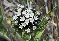 Amsonia kearneyana is a rare species of flowering plant in the dogbane family known by the common name Kearney's bluestar. It is native to Arizona, where there is only one native population in the Baboquivari Mountains of Pima County. There may also be a population just south of the border in Sonora, Mexico.[1] The plant was federally listed as an endangered species in 1989.[3] At that time the global population of the plant was made up of eight individuals in a riparian canyon.[3] Since that time the plant has been manually propagated in an attempt to increase its numbers.[1] Threats to the tiny native population include habitat destruction from livestock activity and flash floods in the river canyon.[1] Many of the plants cannot reproduce because their seeds are sterile and nonviable, but this is probably due to insect predation on the seeds as they develop.[1][4]