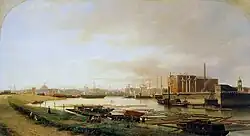 In November 1842 Amsterdam Wooden Drydock I, the first dry dock of Amsterdam had opened. It was a wooden floating dry dock, and was an immediate success, servicing 64 ships in just under a year.[1] At the time Amsterdam had two large wet docks: Westerdok and Oosterdok. Drydock I was situated in the more important Oosterdok.