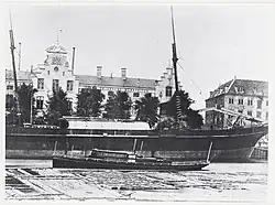 Paul van Vlissingen thus founded the Stoomschroefschooner Reederij (Steam screw schooner line)) to operate a line to London. The British St Petersburg Steamship Company had opened a line between London and Amsterdam in October 1847.[43] When it heard about Van Vlissingen's plans it threatened that it would open a line from Amsterdam to Hamburg. In March 1849 the Stoomschroefschooner Reederij got its concession.[44] The Gouverneur van Ewijck, built by Van Vlissingen en Dudok van Heel, was one of the ships used on the London line in 1849.[45]