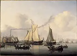 ![]() The steamboat Mercurius of the ASM, leaving Amsterdam for Zaandam, c. 1830. | |