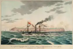 In 1830 the ASM decided to employ the Beurs van Amsterdam to extend the line from Amsterdam to Hamburg to Petersburg.[28][29] After the Belgian Revolution, the Beurs van Amsterdam wanted to steam to Petersburg again, but now the Russian government had given a monopoly to a Russian company.[30] The Beurs van Amsterdam was then used to operate a line from Rotterdam to Dunkirk. This made sense, because the Dutch - Belgian border was closed.[31] De De Onderneming, renamed Graaf Cancrin was also busy in the Baltic for some years.[31]